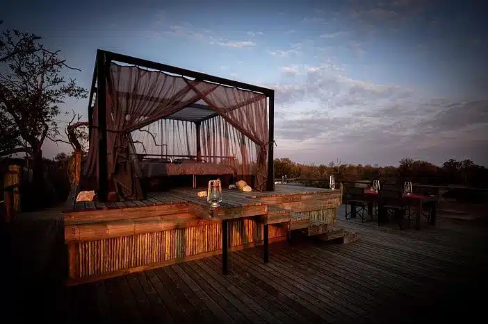 Now MCH, their newest tented camp also has an bush sleep out deck experience. A lantern-lit dinner table for two and a four-poster bed draped in a canopy of netting sets the scene for a night of romance and indulgence. Because the sleep out deck is elevated, you are perfectly safe while you experience the Makalali from a different perspective.
