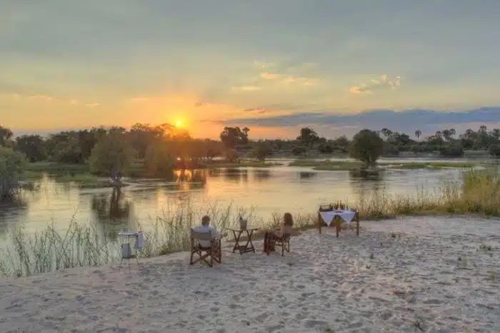 This one is hugely romantic! But might involve spending the sort of money that you’d prefer to keep for the honeymoon. But if you’ve just had a nice bonus… Why not head to the very heart of the Okavango Delta to Camp Xugana where they have a sampan moored close to the lodge for private romantic dinners floating on the Okavango Delta. Another option could be at Tongabezi Lodge where they also have a floating deck on the Zambezi River.
