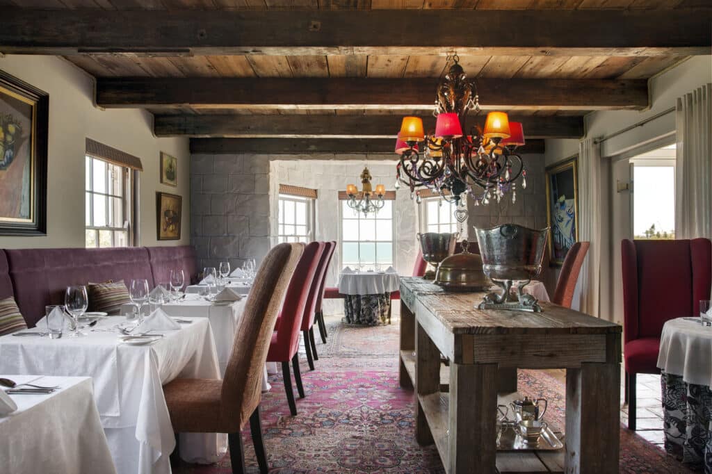 Abalone House is a little boutique hotel with ten suites in the picturesque fishing village of Paternoster on the Cape West Coast, known for its unspoilt white-washed thatched cottages. Some β though not many β of the ten suites enjoy sea views but the white sandy beach and ocean lie only a few meters away. Many suites also have private outdoor relaxation areas and there is even a rooftop Jacuzzi with sea views – to relax after your sight-seeing is done. Or you can cool off in the swimming pool, before enjoying a cocktail in the Africa Bar. A coveted and highly acclaimed Reuben’s restaurant opened in October 2013, elevating Abalone House to new heights of luxury, decadence and service. Β The elegant Reuben’s Restaurant at Abalone House is open for lunch and dinner to both in-house guests and members of the public.