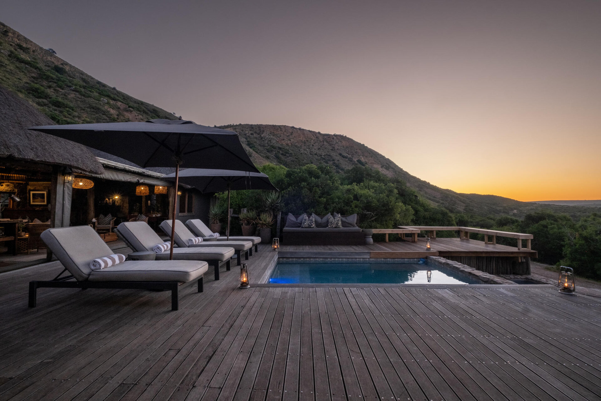 Amakhala HillsNek Safari Camp sets the stage for unforgettable African sunsets followed by evenings enjoying bush-inspired cuisine and celebrating all that is ‘safari’. The lodge is ideal for families, small groups or those seeking a truly romantic retreat. HillsNek Safari Camp is available as an exclusive-use lodge on request.