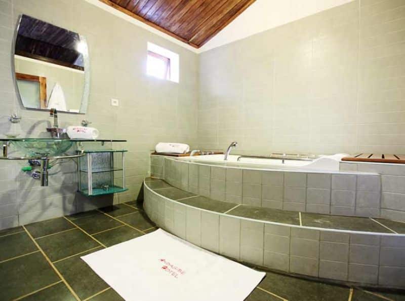 Andasibe HotelΒ is an equally good alternative to Vakona Forest Lodge in the Andasibe-Mantadia park area. As both are very popular, it may be a case of which one has space! Here the rooms are noticeably grander and larger than the rooms at Vakona. But I felt that the main building was less characterful so its a case of 'swings and roundabouts'. Do you like lazing in your room or do you like sitting in the main lodge? The rooms were some of the nicest I saw Β on mainland Madagascar with copious use of wood, a separate sitting area, minibar, large bathroom with walk in shower (albeit with chocolate-coloured tiles).