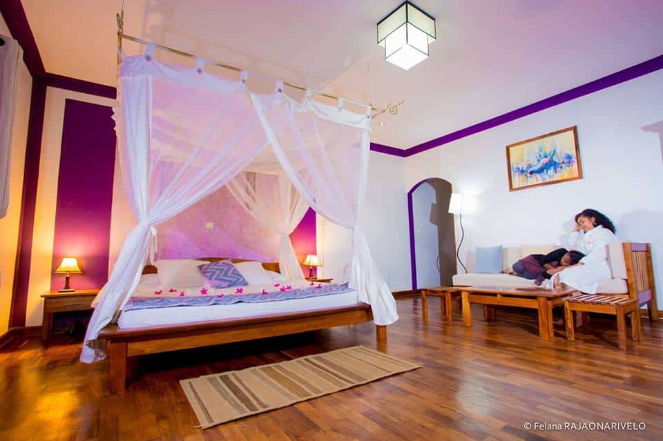 Other facilities include a restaurant serving both international and Malagasy dishes as well as a cocktail bar. Other facilities include a swimming pool, billiards, pΓ©tanque and a selection of board games There’s also a treatment room for massages β perfect for tired legs after a morning of hiking in the forest reserves. Outside there is a playground for children with a trampoline.