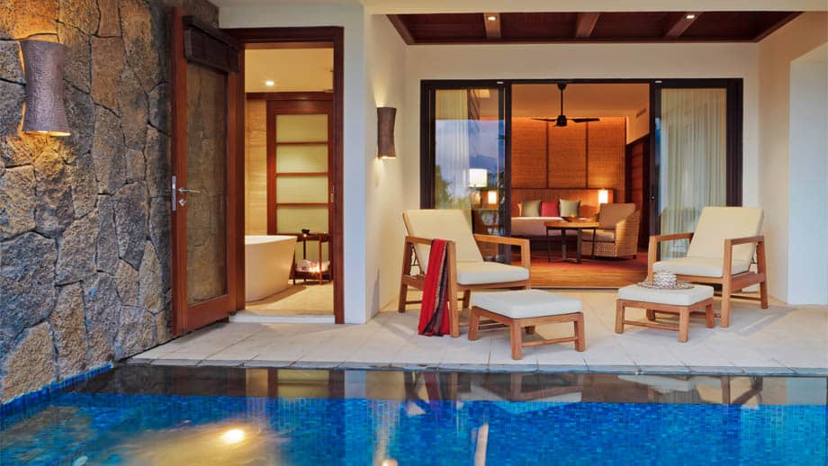 There are six types of rooms at Angsana Balaclava to choose from including the standard Garden Suite with its full length glass windows giving you a wonderful view of the landscaped gardens and sea beyond. The Deluxe Pool SuitesΒ haveΒ views of the garden or ocean and feature their own private pool with direct entrance to the bathroom so you can enjoy a refreshingΒ dip in the pool and walk straight into your bathroom for a quick shower afterwards. The Ocean Front Pool Suite also has it’s own pool as the name suggests but it is larger and has its own veranda for you to relax by the pool after your swim. These suites make the most of its gorgeous views of the beach and ocean with the pool and spacious stone bath facing the ocean front. The Beachfront Pool Suite have an L shaped infinity pool with the added luxury of a warm jet pool or steam shower.