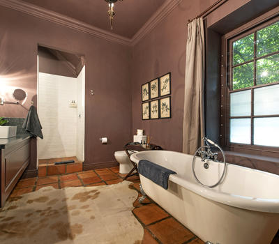 The original Cape-Dutch house was built in 1870. It has been stylishly renovated adding modern-day comforts whilst retaining many original features. Avondrood offers six generous rooms, one in the main homestead and five overlooking the garden. One of these is a two bedroom family suite accessed via a spiral staircase. It has a large terrace with glorious mountain and valley views, a small sitting area and one bathroom. It can also be accessed via the main homestead as well. A contemporary selection of paintings and sculptures decorate the rooms, lounge, garden and patio. Avonsrood has a surprisingly large garden with private swimming pool and jacuzzi.
