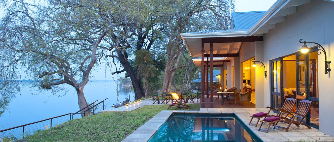 The main lodge has an open plan design with magnificent views of the Zambezi River from the Selous Bar, lounge and dining areas and from the large swimming pool. The outdoor boma-style fire place is lit every evening. There’s a small library and computer area if you need to catch up with the outside world. In room spa treatments are available in your room or on your private veranda.