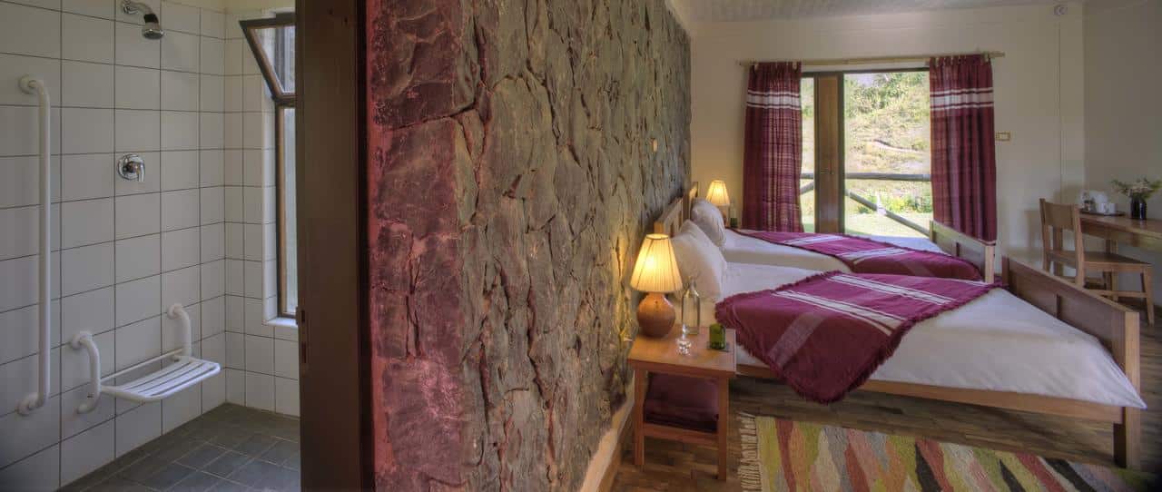 Bale Mountain Lodge is designed to accommodate 30 guests in 15 rooms. There are three types of room, which are quite different in feel and function.