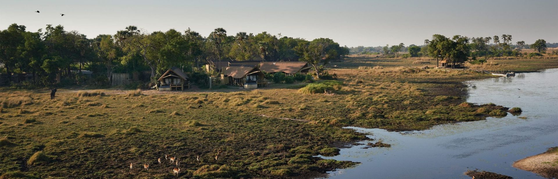 Eagle Island Lodge at Xaxaba is in the permanent waters of the Okavango Delta. The word Xaxaba means ‘island of tall trees’, aptly naming this luxury tented camp under the shaded canopy of indigenous trees. Eagle Island overlooks a surrounding lagoon which is fed by the waterways of the Okavango Delta. The island and its surrounds offer exceptionally good game-viewing, home to elephant, red lechwe, buffalo, giraffe, shy Sitatunga and the rare Pel’s fishing owl. Game viewing is by mokoro and boat (water levels permitting), as well as walking trails on the islands to track the wildlife on foot. This is a fine birding area, one of the Delta’s most pristine, given its myriad waterways, palm-treed islands and vast flood plains which is heaven for fish eagles, herons, egrets and kingfishers. During the summer months of November to March, the lower water levels make it possible to drive open 4×4 vehicles off the island.