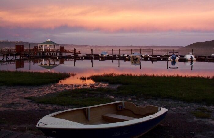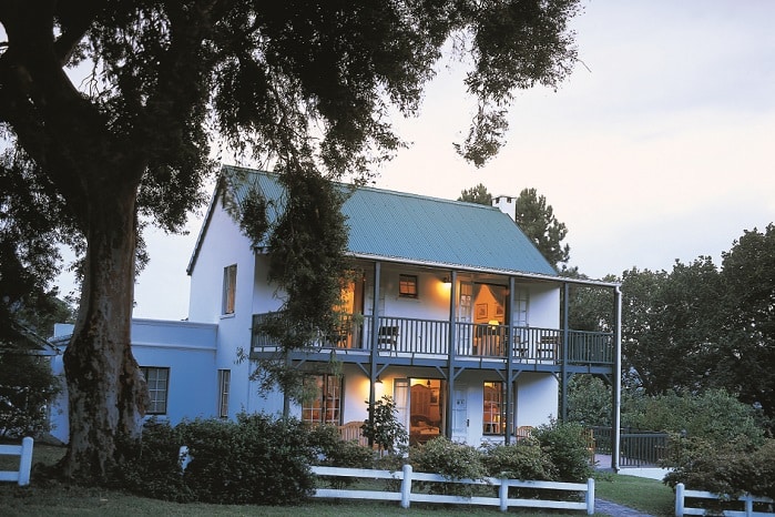 Meals are served in the beautifully restored homestead with its polished yellowwood floors and Cape antiques, or on the terrace overlooking the swimming pool with the turquoise waters of Knysna lagoon beyond.