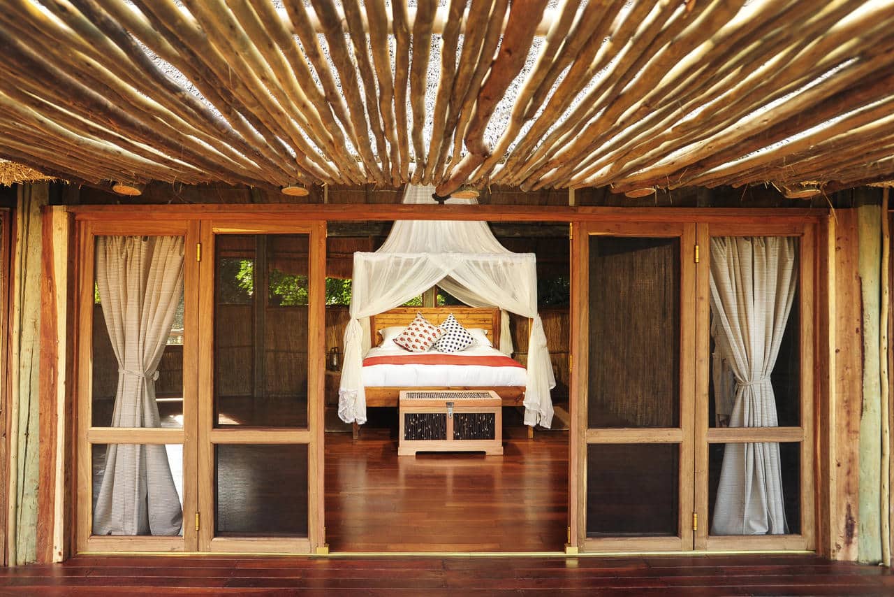 Bilimungwe Bush Camp has just four spacious thatched chalets on raised viewing decks. Supremely comfortable yet still retaining an authentic bush camp feel. All are integrated into the shady landscape with the dark wood of the mahogany trees echoed in the beautiful wooden furniture, handmade by local artisans. Bright African textiles bring splashes of colour to these elegant rooms.