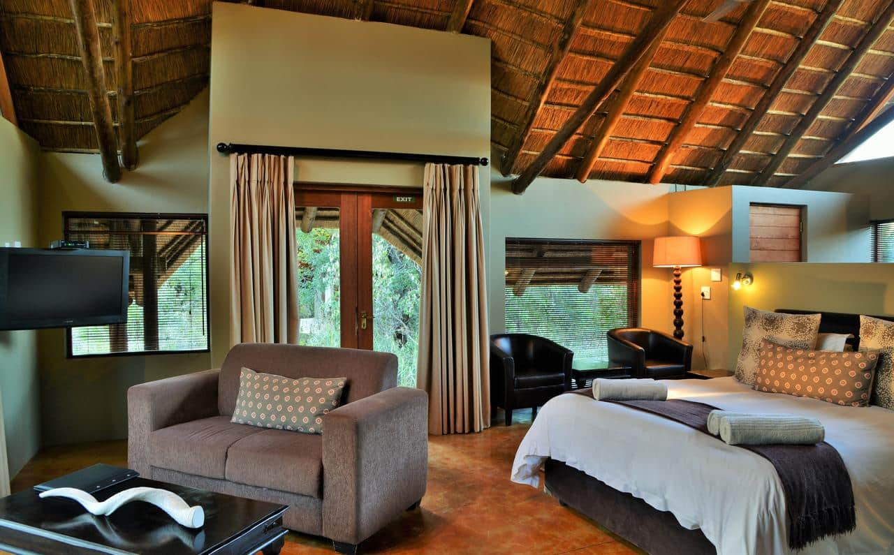 There are 20 suites with twin or double beds, each with air-conditioning, hairdryer, full bathroom with outdoor shower, satellite television, safe, tea/coffee facilities and a private veranda. Black Rhino Game Lodge welcomes children who can share with parents. Children from six years and older can join the game drives.