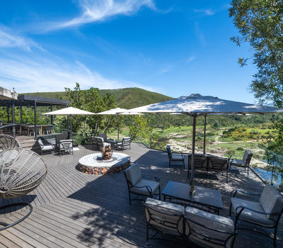 NEW spacious Executive Suites with extra king bed, lounge area, mini bar, coffee & tea facilities, air-conditioning & indoor fireplace. En-suite bathroom with oval bath & double outdoor shower, Jacuzzi and an open air bed under the African sky.