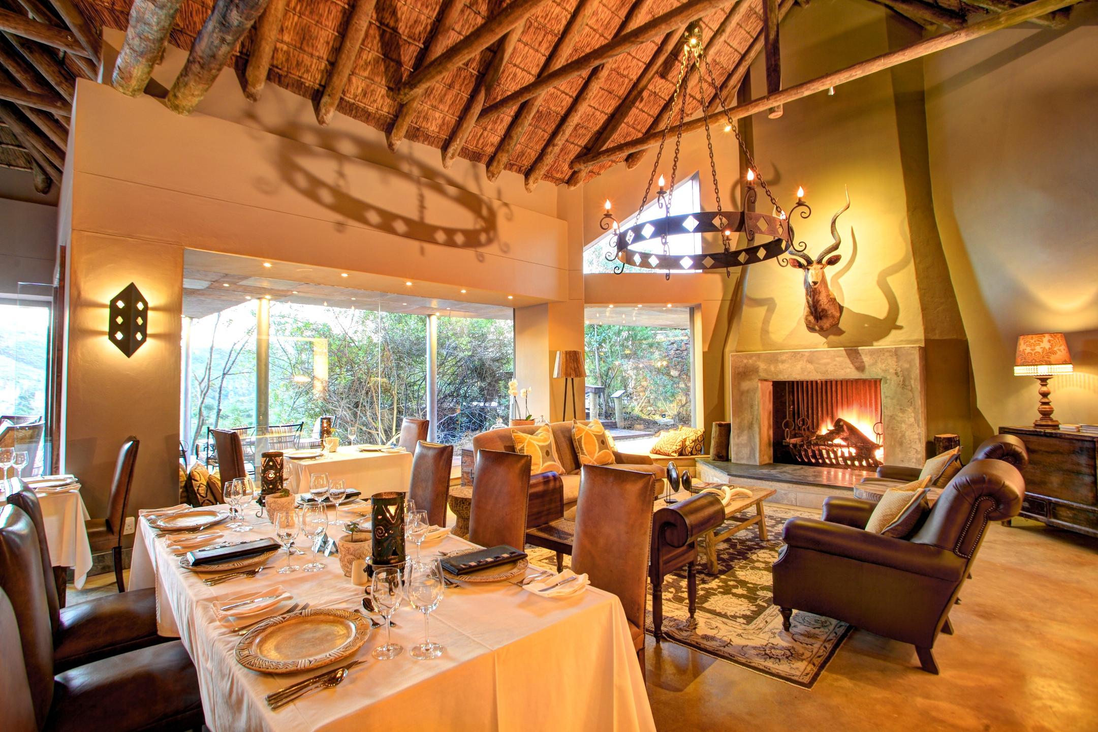 Traditional African dinners are served in an elegant thatched roof restaurant. Beforehand you are entertained by African drummers around the camp fire. Nearby there is a stunning rimflow swimming pool with open views over the bush below.