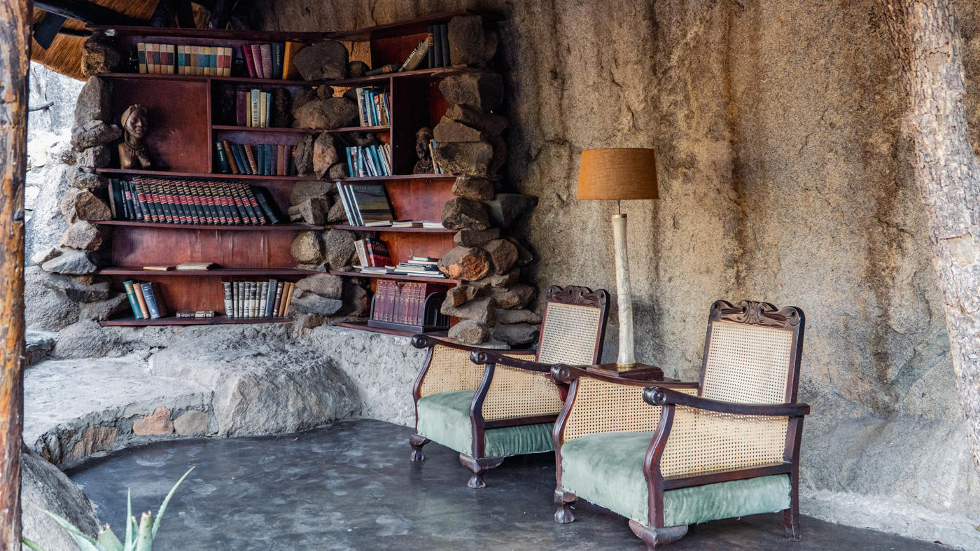The lodgeΒ is built around some of the granite boulders of the mystical Matobo Hills in a former ancient Bushman's shelter. The lounge and library enjoys these panoramic views of the surrounding Matobo Hills.