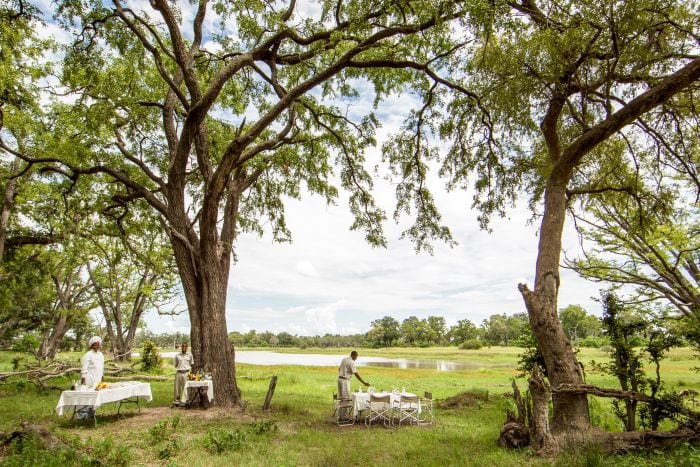 Here ancient Mopane forests, open grassland and seasonal floodplains have formed. Trained naturalist safari guides share their knowledge and deep love of the wilderness with you on game drives. Where sightings of wild dog, cheetah, leopard, lion, elephants and buffalo are possible. Being in the Moremi National Park, safari activities revolve around game drives. But interestingly given the campsย location on the river, boat trips are also possible to explore the lagoon and surrounding channels.
