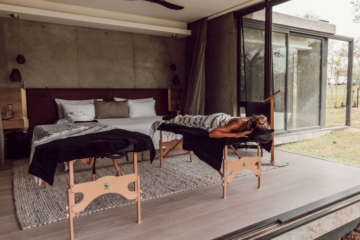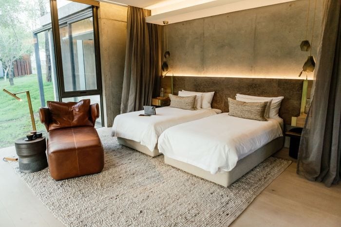 The King-bedded guest suites each have their own private deck, dressing room, lounge, double rain shower & bath overlooking the splendid African Bushveld.
