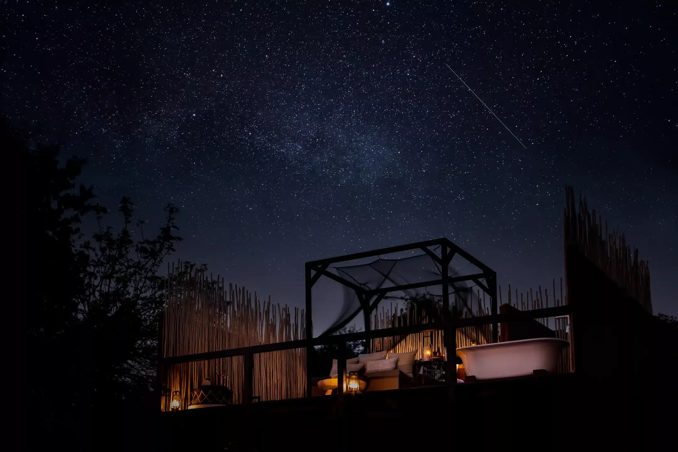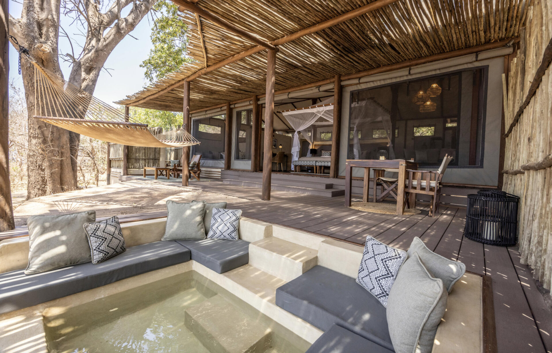 Nine huge shaded safari tents are a sanctuary of luxury and peace with timber floors, king sized beds under mosquito nets, pure cotton linen, Molton Brown products and 24/7 lighting and charging facilities. They are uniquely elevated on timber decks on two levels to make the most of the river views. Carefully designed, each en suite bathroom has a ball and claw bath with a glorious private view over the Zambezi river, as well as both indoor and outdoor showers. Tent nine is perfect for honeymooners and adventurous couples. It is elevated way off the ground and is the most private with a very outdoor remote feel. It has an outdoor bathroom under the thatch and on the deck with ball and claw bath, shower and double basins.