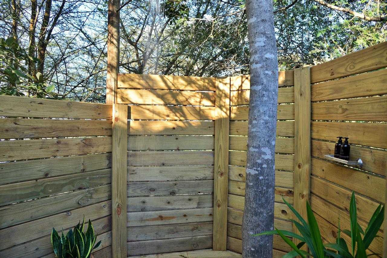 The treetop chalets are elevated on stilts above ground surrounded by the tree canopy with twin beds and en-suite bathroom including indoor and outdoor showers; ceiling fans and mosquito nets.Β