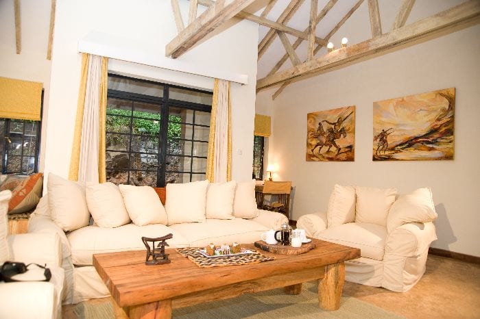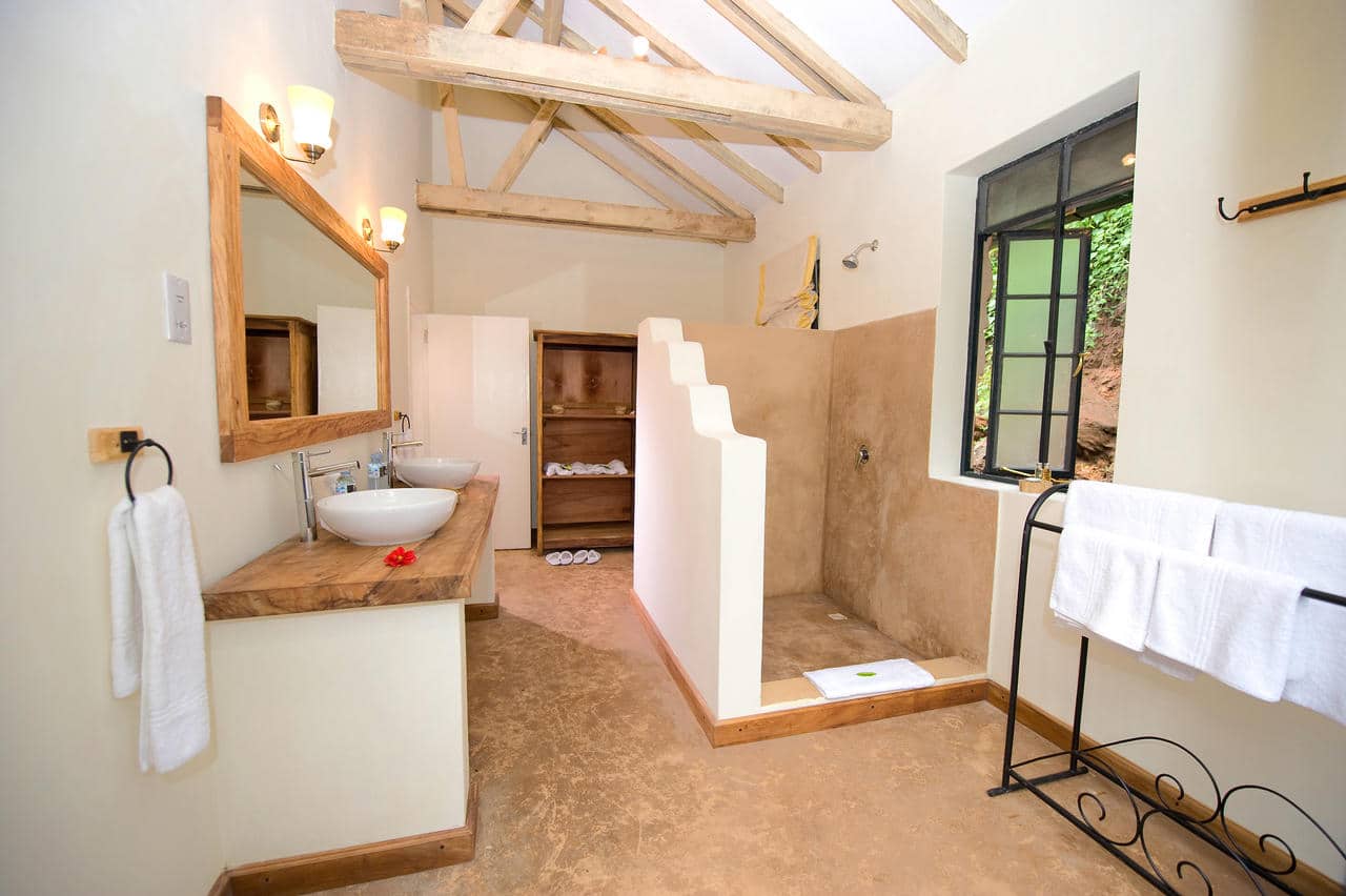 Guests stay in private stone cottages, all of similar fine standard. 8, large and spacious stone cottages with separate living rooms and ensuite bathrooms. All cottages have their own private sitting room with a fireplace and deep comfy armchairs and sofa. Each cottage features the original commissioned artwork of an individual Ugandan artist and has breath-taking views through big picture windows looking out to the Virunga Volcanoes. Guests can opt for King size bed or two twins. These cottages have outdoor verandas with sitting area. Family Rooms have a grassed area outside where guests can sit and drink in the view.