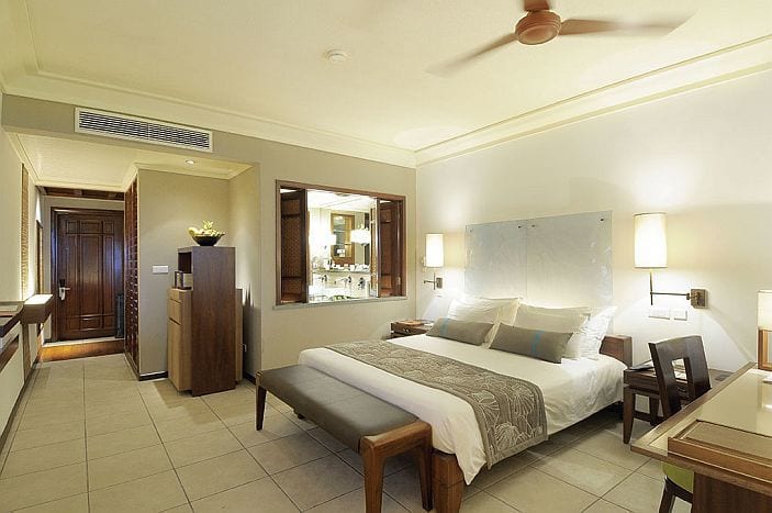 TheΒ Belle Mare Plage has 235 rooms and suites with five styles of accommodation ranging from contemporary suites to ocean villas to family villas. However every room has a sitting area, satellite TV, air-conditioning, minibar, internet access, and safe as well as a balcony or terrace. The bathrooms have separate bath, walk-in shower and double basins.