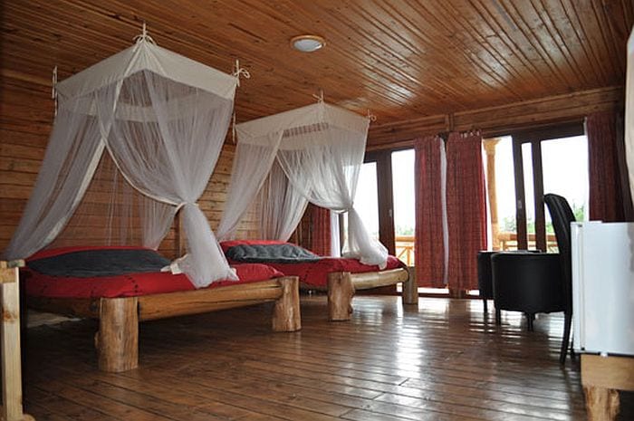 All 7 rooms offer a high standard of comfort and views of Lake Kivu and the surrounding islands. In addition, the VIP room has a view of theΒ fiery crater of the Nyiragongo volcano in Congo. Each room isΒ equipped with television, wi-fi, mini fridge and bath / shower.