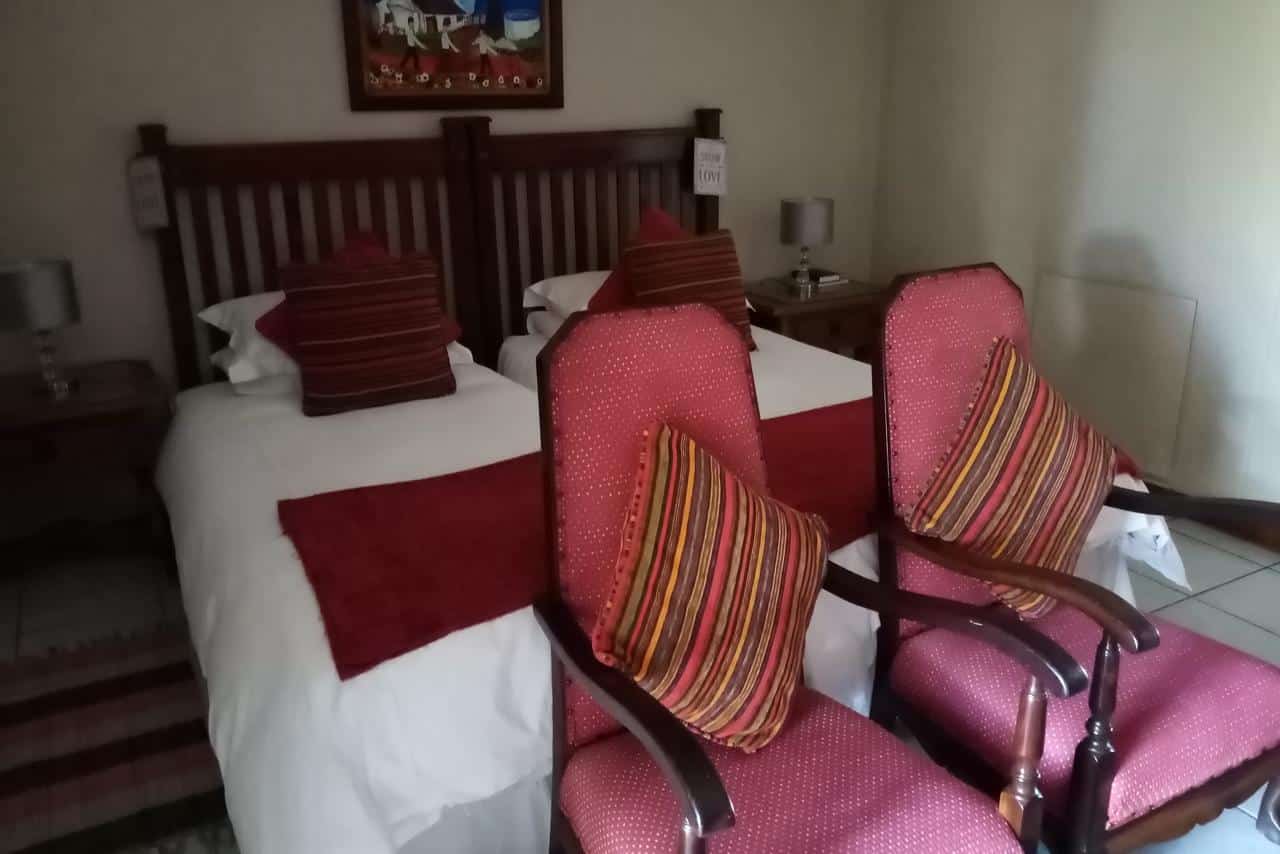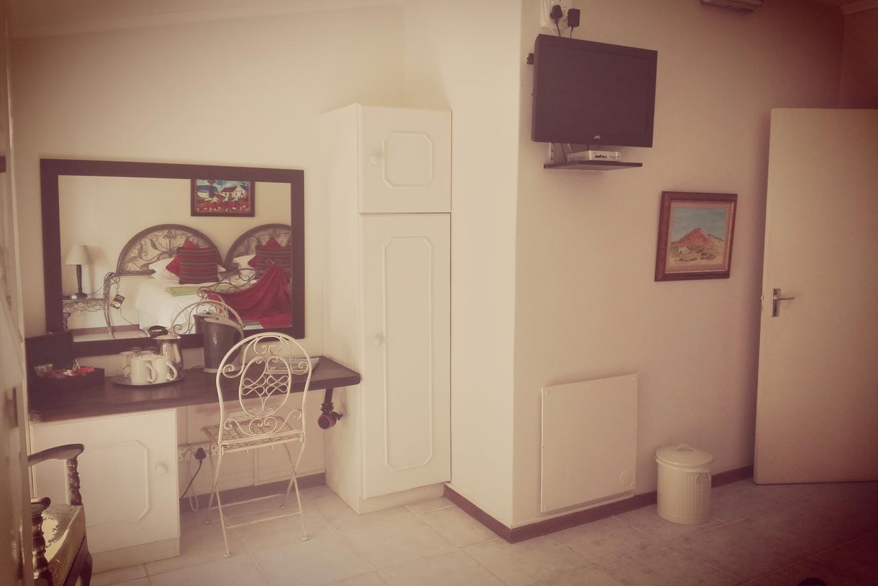 Spacious room consisting of a King size bed which can be converted into twin beds. The room is big enough to add a sleeper couch. En-suite full bathroom with bath & shower. Private outside entrance, air-con, heater, DSTV, stocked bar fridge, tea/coffee.