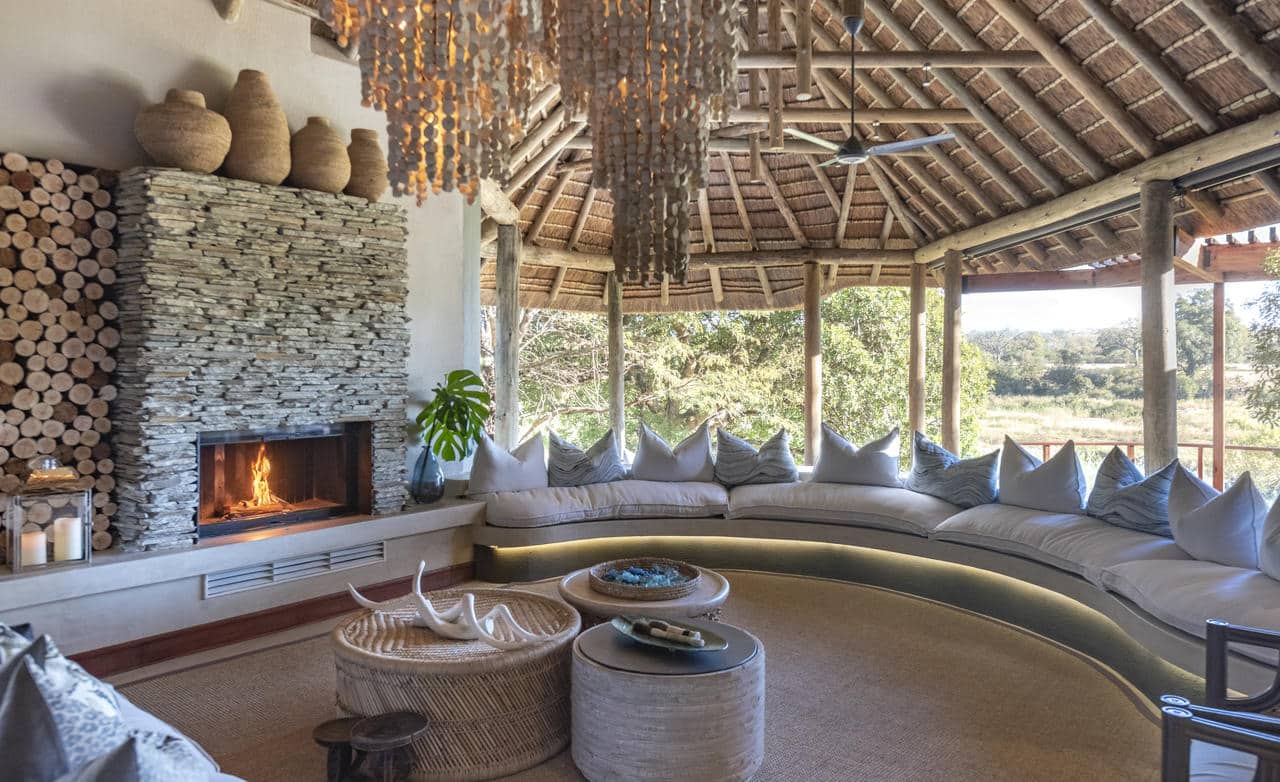 At the main lodge the sitting and dining areas have open views of the Sand River. Teak furniture, deep sofas covered in rich linens and interesting ornaments from around Africa create a welcoming and relaxed ambience. A giant Sausage tree provides shade for long lazy lunches whilst dinners are enjoyed in the open-air boma around a blazing fire, on the deck of your suite or even in the bush, lit only by candles.