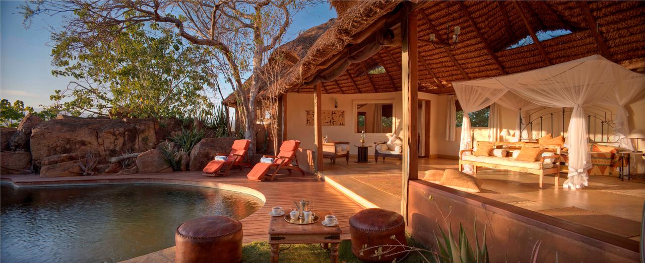 Elsa's Kopje is a luxurious and romantic oasis in the beautiful Meru National Park of Kenya. It was named after Elsa, the orphaned lioness made famous by George and Joy Adamson. Close by the lodge, Elsa's descendants still hunt the shy but plentiful plains game. This award winning lodge has to have one of the most beautiful settings in Kenya high on Mughwango Hill, blending seamlessly into the rocky crags of the natural landscape. It shares its hillside home with plenty of bush babies and hyrax (rock dassies).