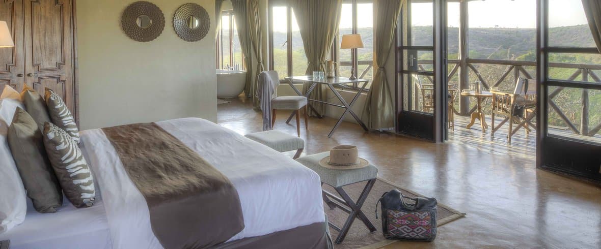The Emakoko is a family run luxury lodge beautifully built into the side of a valley on the Mbagathi River, on the border of the Nairobi National Park. Great care has been taken to incorporate the beautiful fig trees which grow on the cliff where the lodge is situated. All 10 rooms look straight over the river and into the Park.