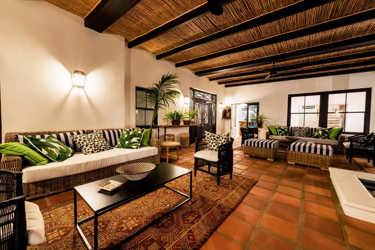 Refined and sophisticated, yet warm and welcoming, the elegant interior has been carefully considered. Taking inspiration from the works of South African painter, Irma Stern, the colour palette is a unique combination of neutrals with vibrant splashes of colour. Coupled with the whitewashed walls, brushed cement flooring, and natural materials and textures, the result offers a more modern take on country living.