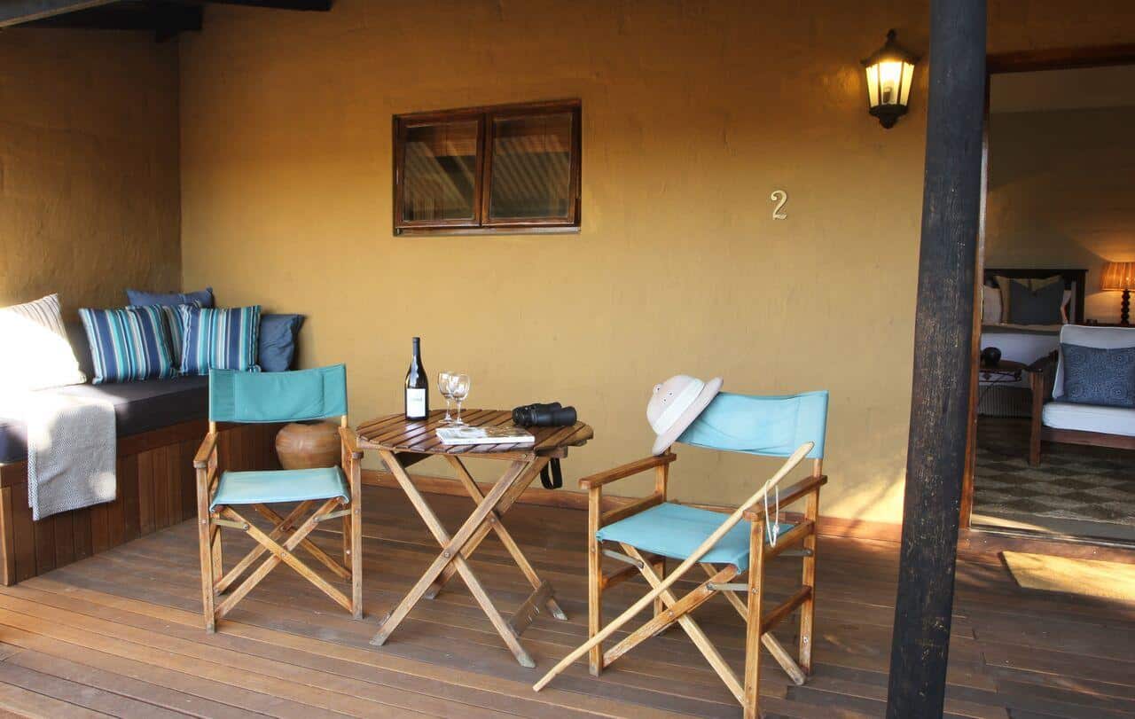 Fugitives’ Drift Guest House offers simple yet comfortable accommodation. The original homestead is now an open plan sitting and dining room filled with battlefields memorabilia. However usually meals are taken outside on the stoep (covered veranda) with its views over the plains towards the battlefields of Isandlwana. The cottages are decorated in an elegant colonial style very much in keeping with the ambience of the lodge, all with private verandas with sweeping bush views. There’s a small swimming pool which overlooks the indigenous bushveld to the plains of Isandlwana.