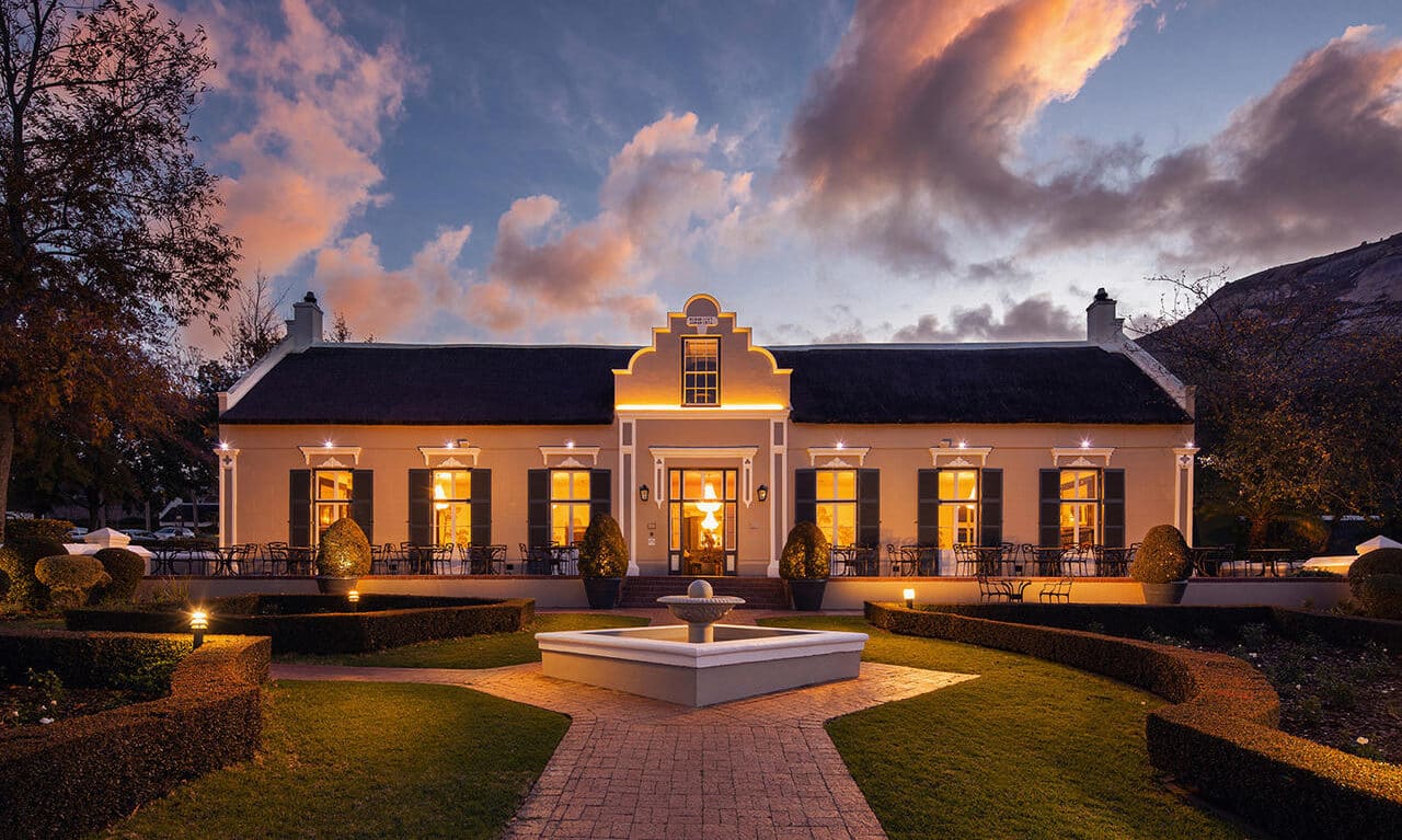 The Grande Roche Hotel in Paarl is one of the loveliest places to stay in the northern Winelands with its focus on superb cuisine and refined service. This 18th century Cape Dutch manor house hotel, a National Monument, is surrounded by vineyards and ancient oak trees and has Paarl Rock as its glistening backdrop.