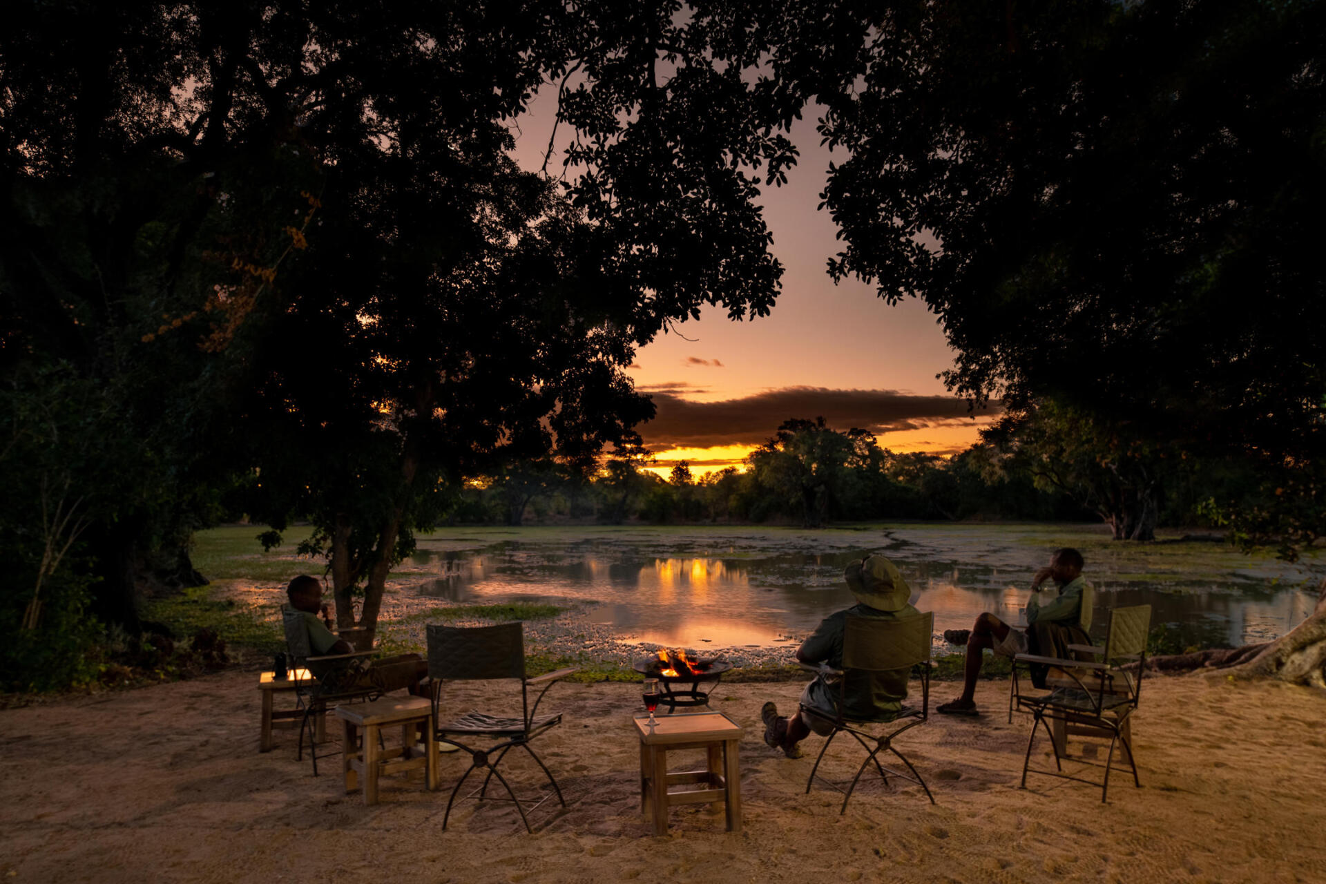 Ingwe Pan is situated at a secluded pan in the wilderness area of Mana Pools National Park, just a few kilometres inland of the Zambezi River and within walking distance of the Chiruwe river bed. The pan is one of the biggest in the park and is surrounded by a grove of large ebony trees. A magnificent fig and ancient ebony form the canopy of the main lounge and dining area of the camp. An ancient baobab is a few minutes walk from the camp and the perfect spot for picnics and sundowners in the evening.