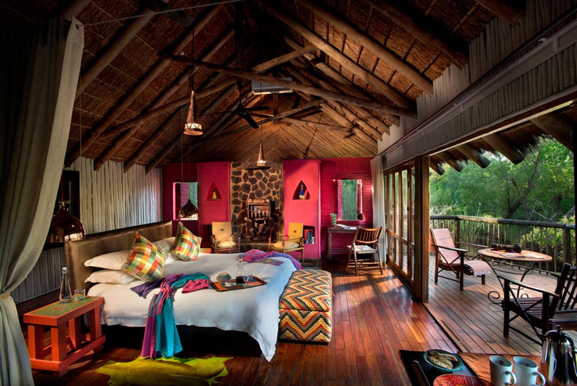 Jaci's Tree Lodge, on the eastern side of the malaria-free Madikwe Game Reserve in South Africa provides a delightful and authentic African experience with vibrant colours and funky modern touches.