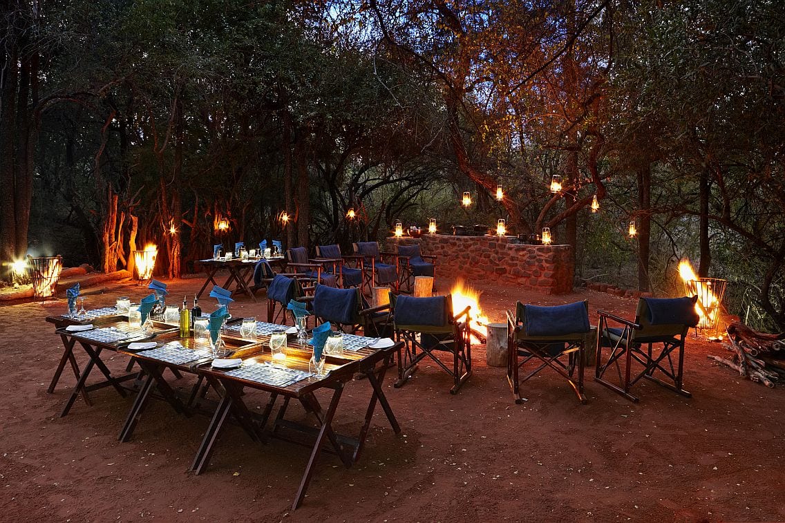 The main lodge area has open sides and incorporates elements of North African design with a funky bar and sitting area. There is also an open dining area and off to one side, you have a reading and relaxing sala complete with hammock to really help you chill whilst on safari. Relax on your own private deck, laze in the hammock in the reading sala or wander to the forest pool to cool off. Dinners are an intimate affair at Jaci's Tree Lodge where you dine under the stars, either in the boma or at a bush braai after the excitement of a day on safari.