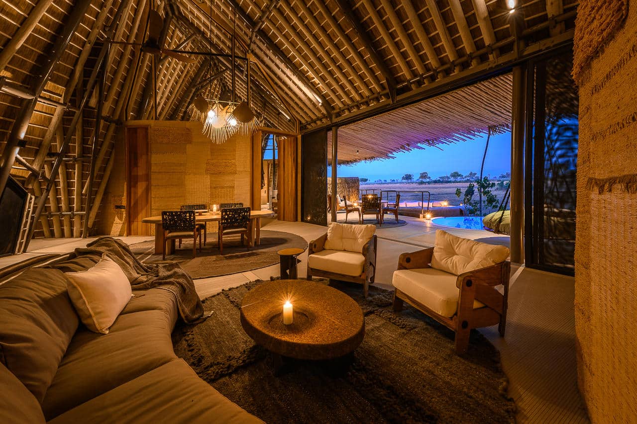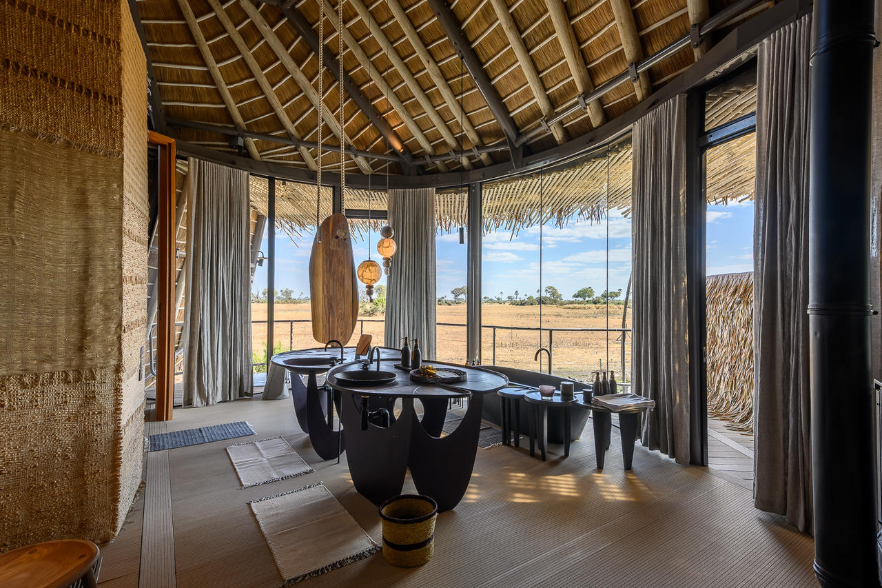 Jao Camp (rebuilt in 2019) comprises a main area elevated into the tree canopy, two exclusive villas and five twins all with private plunge pools, lounge and dining areas, and en-suite bathrooms, including indoor and outdoor showers. The two Jao Villas, accommodating four people each in two identical guest rooms, share a main area, and also have an exclusive vehicle, guide, chef and butler.