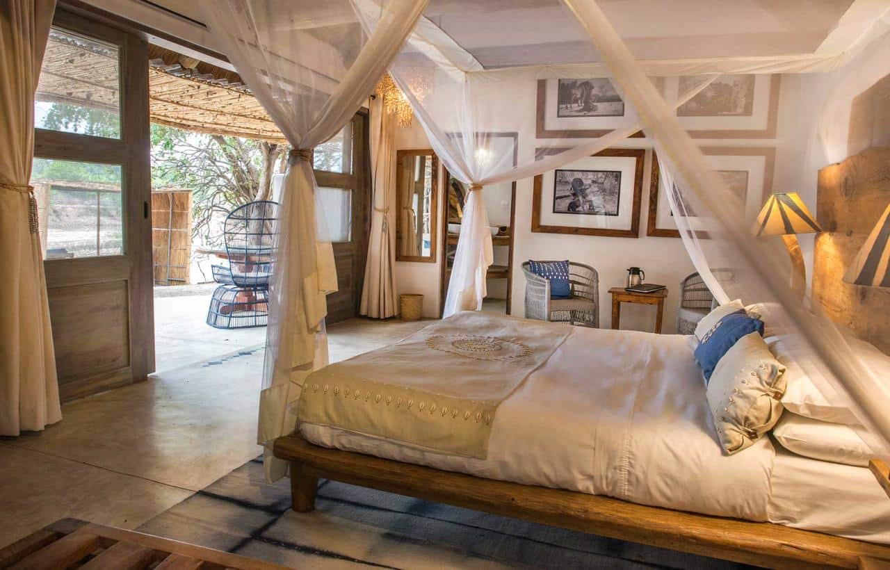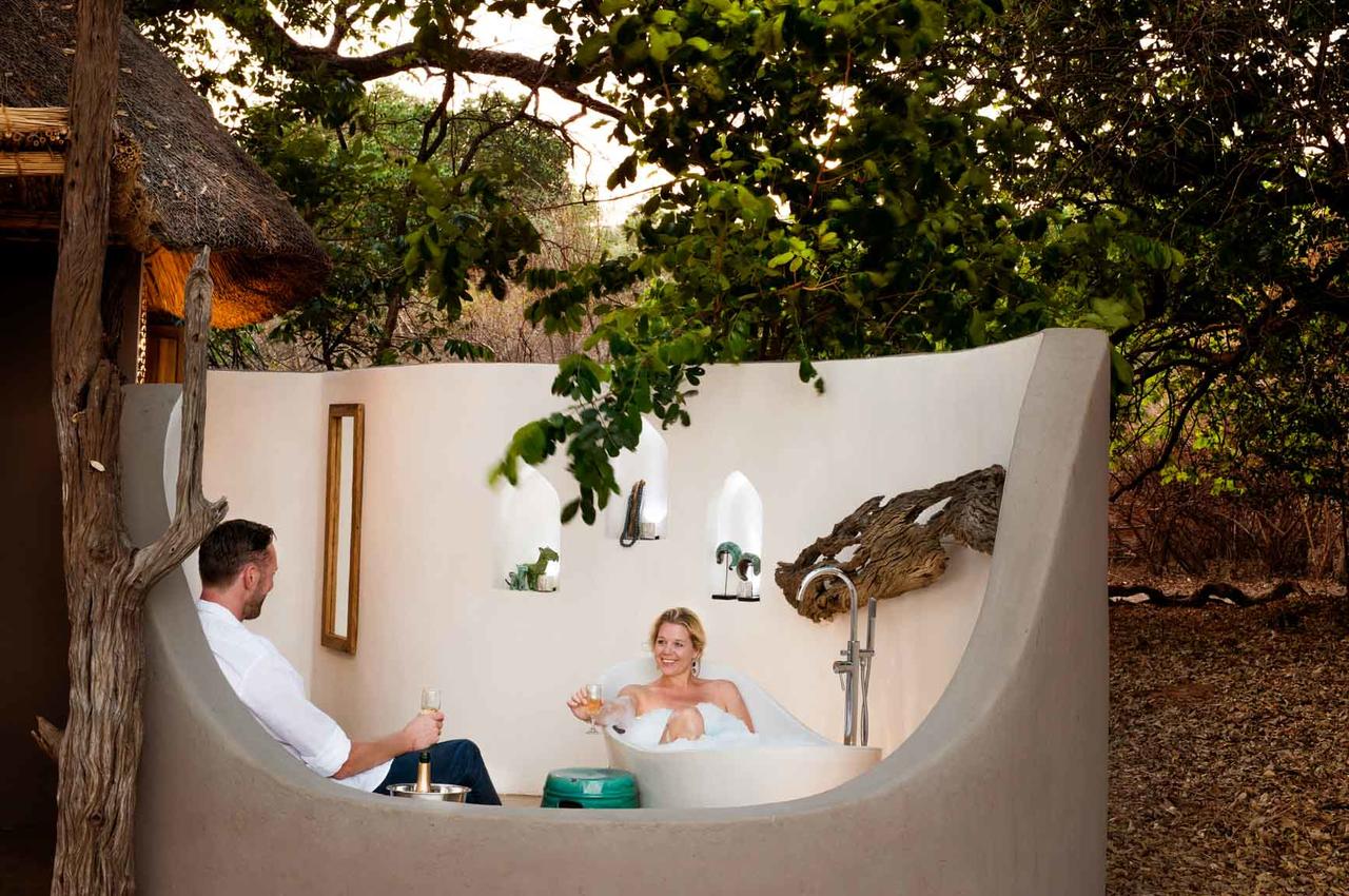 Spaced discreetly apart on the banks of the river, Kaingo’s five chalets and one deluxe suite were designed with the sole purpose of transporting you into the world of the Luangwa without a single distraction. Large, gauzed windows and skylights offer uninterrupted views and a real sense of being immersed in nature. The spacious and beautifully styled rooms feature comfortable king size beds, solar powered charging points and fan. En suite bathrooms come with the choice of indoor shower or indulgent outdoor bathtub. When not out on activity, you can enjoy the sights and sounds of the bush from your shaded veranda, day bed or private viewing deck perched high above river.