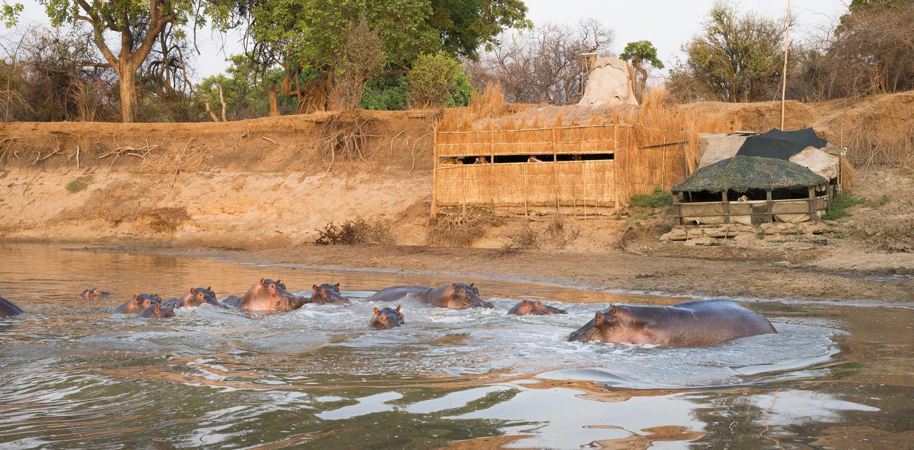 Two of the world-famous hides are just a short drive from the camp. The towering Elephant Hide, sited at an ancient elephant crossing point on the river, and the Hippo Hide. Built into the riverbank and offering a breath-taking, eye-level perspective of our resident hippo pod.