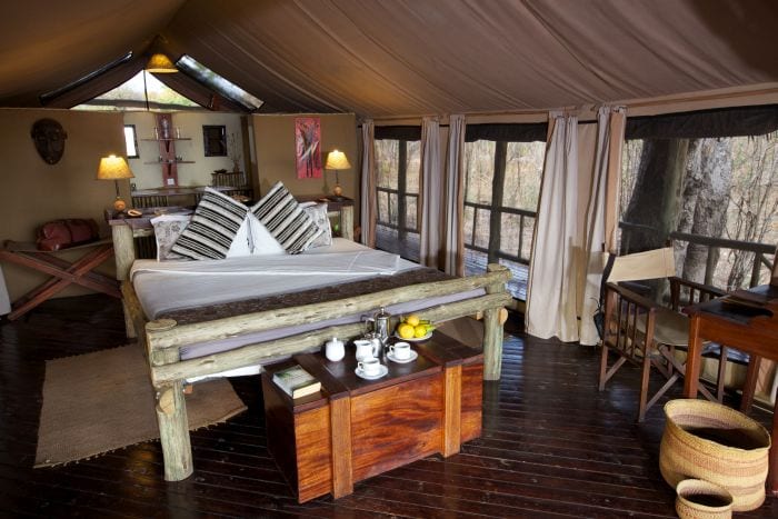 Katavi Wildlife CampΒ has six large Meru-style tents overlooking the plain, four double tents and two twin tents, and all with a safe. Each tent is built on a raised wooden platform and has a traditionally thatched roof to give shade from the midday sun. Every tent is en-suite and has a large veranda complete with hammock and chairs.
