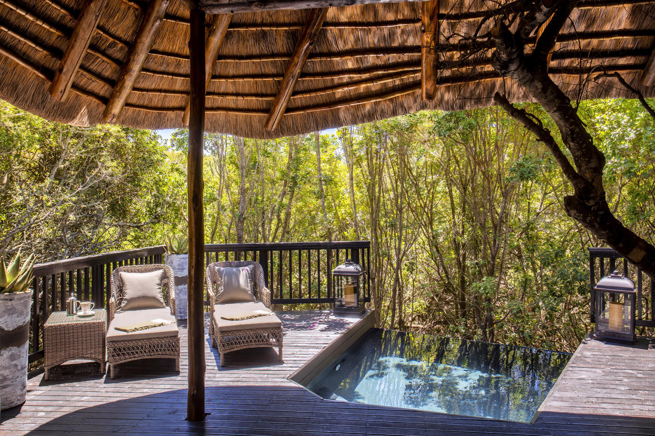 The 7 bush facing suites are decorated in the same luxurious style as the main lodge. Each suite has a private deck with heated plunge pool and an outside shower. The suites have been perfectly positioned to maximize the sense of being in the bush. The bathrooms are complete with enormous baths, rain shower heads and β€œhis & hers” basins.