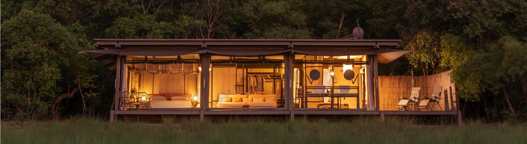 King Lewanika is the only permanent camp in Liuwa Plain National Park, its six open-front Luxury Safari Villas are the essence of pure and simple luxury. The camp retains its safari authenticity with canvas drops, indoor and outdoor showers, decks overlooking the vast Liuwa Plain and the use of thatch and grass in the main area. All furniture was curated as a nod to old-world safari days, using leather, cotton, and canvas. The Villas offer total immersion in the vast landscape, allowing travelers to experience nature in a simple, sustainable, and meaningful way.