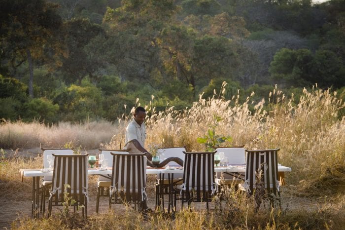 Gather in the main tented lounge area or dining room for drinks and mealtimes, where you can swap exciting tales of game-viewing from your day’s activities. Meals are often served outsideΒ beside the campfire, accompanied only by the stirring night sounds of the bush.