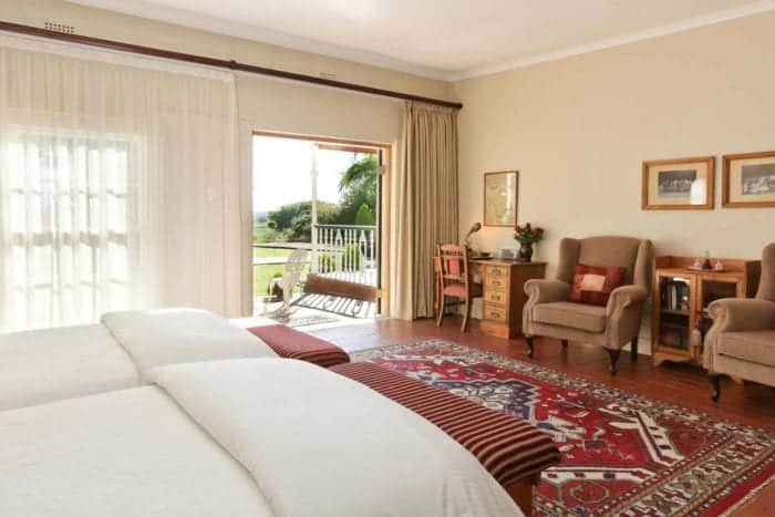 La Plume Boutique Guest House, near Oudtshoorn in the Little Karoo, is a working ostrich farm. With sweeping views over the lovely Olifants River Valley to the Swartberg Mountains in the distance. A peaceful vista to return to after a busy day exploring the many sights of the Little Karoo. Karin’s attention to detail and warm hospitality is what really sets La Plume apart. With lovely little touches such as pretty cushions on the outdoor furniture and flowers on your patio table. The attractive Victorian homestead is decorated in period style with expansive wooden floors.