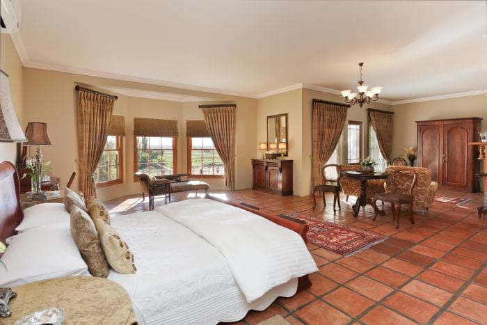 All twelve en-suite rooms at La Plume are well-appointed with air-conditioning, ceiling fan, complimentary port, television & bar fridge, and all are furnished with Cape antiques. The two honeymoon suites are particularly spacious and feature South African antique furniture. The two-bedroom Plumes Cottage with two bathrooms is ideal for families up to five. This can also be taken as a two bedroom cottage for smaller families. The individual bedrooms can also accommodate one child on an extra bed.