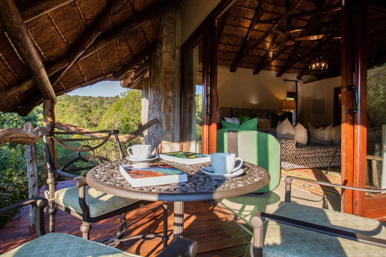 Lalibela spans five eco-systems, (valley bushveld, savannah grassland, fynbos, riverine forest and acacia woodland), resulting in a huge diversity of fauna and flora. African wild dogs, spotted hyena and more lion have also been reintroduced to Lalibela. Game drives in an open 4×4 vehicle with an experienced game ranger bring you face to face with a multitude of game species, ranging from mighty elephant, lion, rhino and buffalo to tiny blue duiker and rock hyrax. Night drives focus on the elusive bat-eared fox, aardvark, black-backed jackal and aardwolf. All of the animals, including the predators, are free-roaming throughout the entire reserve.