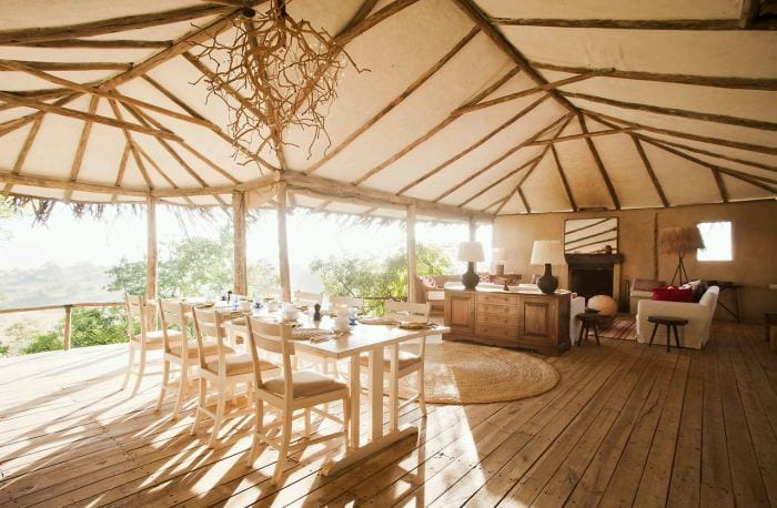 Each of the rooms is designed to fit into the complex geometry of the kopje and to make the most of this sensational location, its views and its natural space and light. The rooms are a blend of canvas, plaster and natural poles.Β Lamai Serengeti is made up of 12 rooms in total; the main lodge and Lamai Private Camp which is taken exclusively by one party or family of up to eight people.