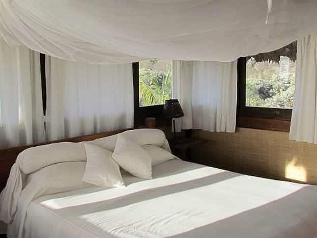 There are 20 well-designed bungalows built of stone and thatch, each with a bathroom and mezzanine living level and balcony which offers unsurpassed sea views on three sides. Some have bedrooms on the ground floor and others have the bedroom on the mezzanine level. The waterfront suite is right on the beach and can easily sleep a family of four, with a sitting area.
