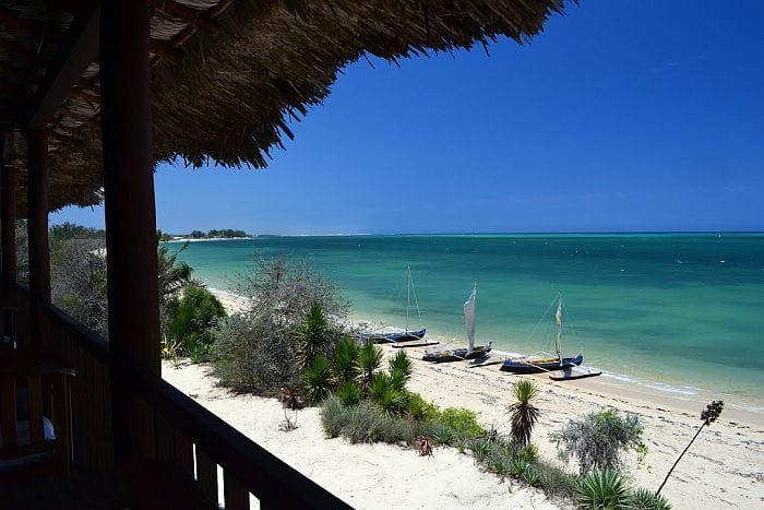 Le Paradisier Hotel is set on the golden dunes overlooking the southern beach of Ifaty lagoon, about 10 minutes from the main part of the village. Surrounded by luxuriant shrubs, the hotel is constructed from local stone, rosewood and thatch and is largely powered with solar energy.