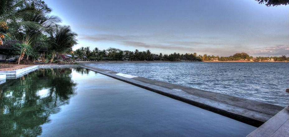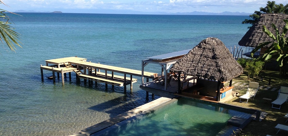 Nestled in a lush tropical garden, l’Heure Bleue enjoys a unique location in Nosy Be, the well known paradise island. Eight luxury lodges and ten waterfront bungalows can be found on the #1 beach of Nosy Be. The hotel is backed by a hill overlooking the bay of Madirokely/Ambatoloaka, preserving both the freshness and intimacy for guests.