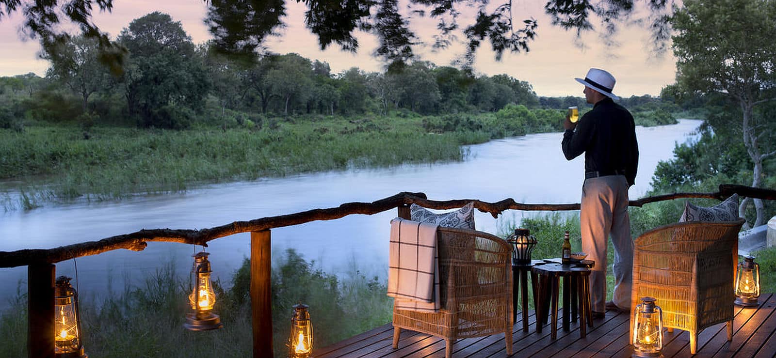 Nearby is the Tinyeleti Treehouse, one of the hallmarks of Lion Sands lodges. Tinyeleti translates as ‘Many stars’ – an apt description for this luxurious Star Bed. Enjoy your choice of tapas or a full meal, and then settle in with a cocktail as the animals come to drink at sunset. The large 50 sqm deck can accommodate 4 people, so your children are welcome. They provide you with a torch, and even though there is no electricity, you will find a few bars of cellphone signal. Relax to the sound of the flowing waters of the Sabie River as well as sounds of the Bush with night predators and birds chiming in.