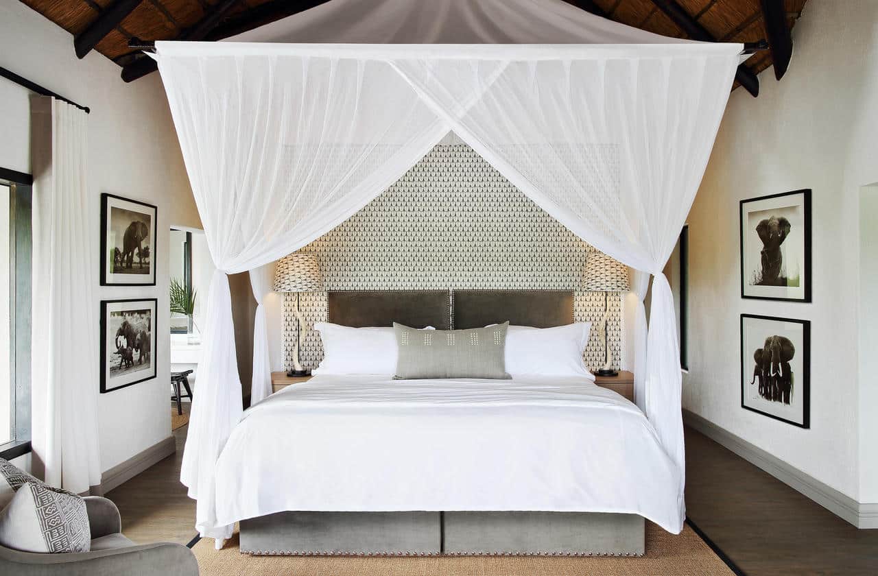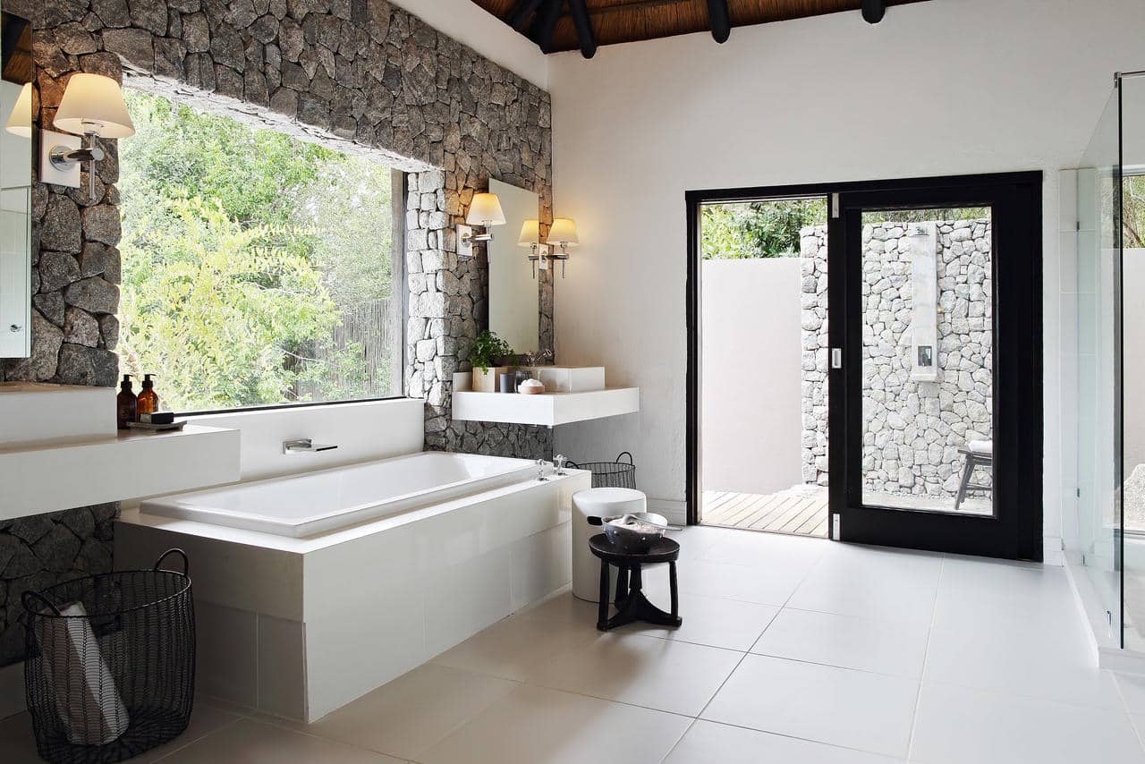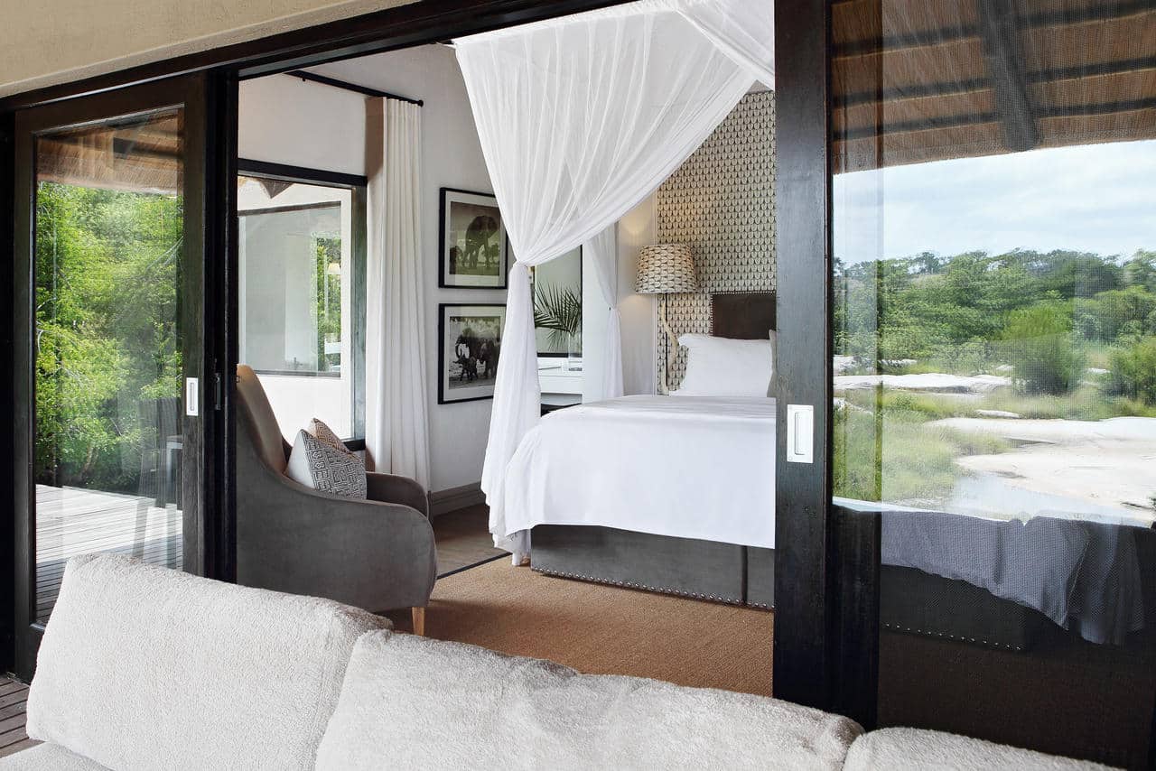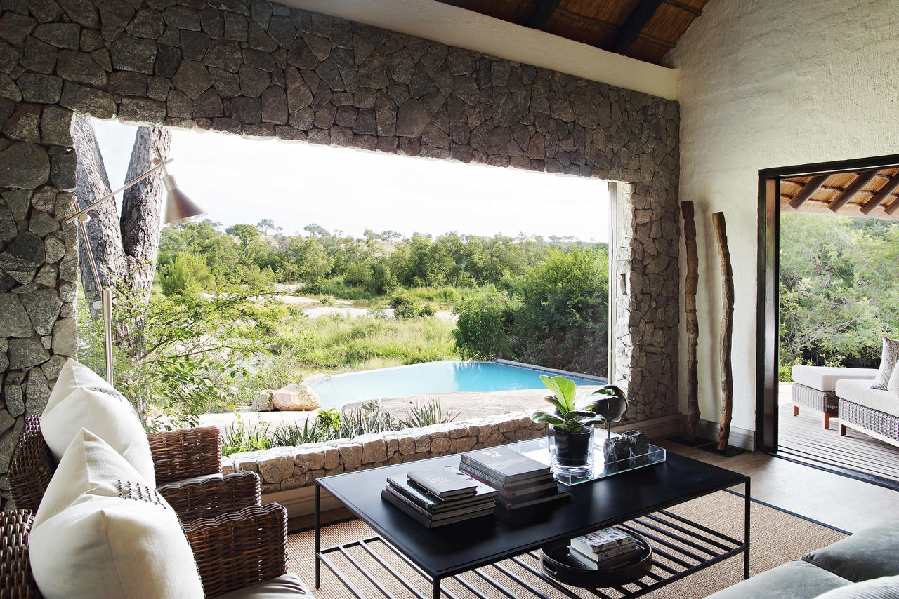 There’s a seamless integration with nature. Large doors and windows place the emphasis on space, light and privacy. They lead out to your own private heated plunge pool overlooking the characteristic flat boulders of the Sand River below. These boulders are often used as impromptu sun beds by passing lions.